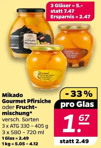 Mikado Gourmet Pfirsiche oder Fruchtmischung Angebote und Aktionen bei NETTO