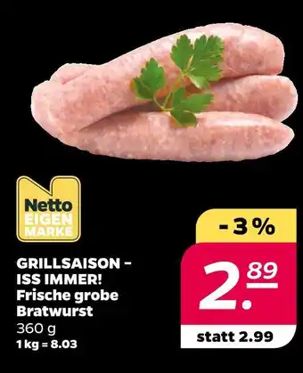 Netto eigenmarke grillsaison – iss immer! frische grobe bratwurst Aktion bei NETTO