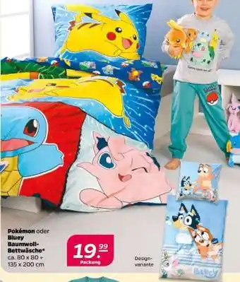 Pokémon oder Bluey Baumwoll-Bettwäsche Angebote und Aktionen bei NETTO