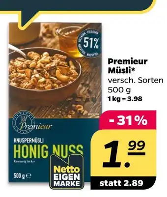 Jetzt im Angebot bei NETTO: Premieur müsli ✅ Aktion gültig vom 2-03 bis 7-03.
