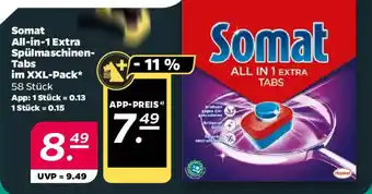 Jetzt im Angebot bei NETTO: Somat All-in-1 Extra Spülmaschinen- Tabs im XXL-Pack ✅ Aktion gültig vom 27-04 bis 2-05.