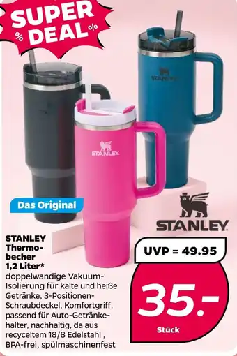 Den Preis von dem STANLEY Thermobecher finden Sie auch oben auf der Website, zusammen mit dem Datum, ab wann das Angebot erhältlich ist. Sie können die Preise auch im aktuellen NETTO Prospekt nachhalten oder auf der NETTO Website nachschauen. Durch die Angebote können Sie sicher sein, die NETTO Produkte zum absoluten Bestpreis zu ergattern.