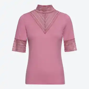Damen-T-Shirt mit Spitze am Ausschnitt-Angebot bei NKD