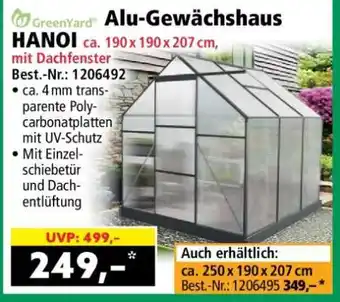 Alu-Gewächshaus HANOI ca. 190 x 190 x 207 cm, mit Dachfenster-Angebot bei Norma