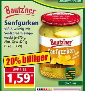 Jetzt im Angebot bei Norma: Bautz'ner Senfgurken ✅ Aktion gültig vom 27-04 bis 3-05.