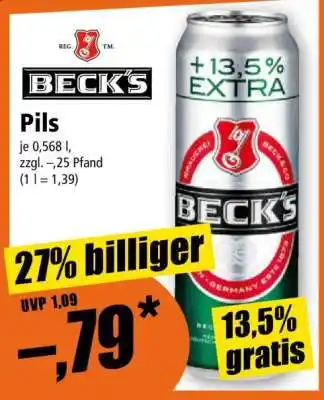 Jetzt im Angebot bei Norma: Beck's Pils ✅ Aktion gültig vom 26-01 bis 1-02.