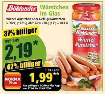 Jetzt im Angebot bei Norma: Böklunder Würstchen im Glas ✅ Aktion gültig vom 27-04 bis 3-05.