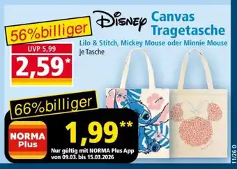Jetzt im Angebot bei Norma: Disney Canvas Tragetasche ✅ Aktion gültig vom 9-03 bis 15-03.