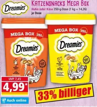 Dreamies KATZENSNACKS MEGA BOX 350 g Dose-Angebot bei Norma