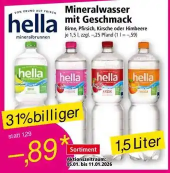 Jetzt im Angebot bei Norma: hella Mineralwasser mit Geschmack ✅ Aktion gültig vom 5-01 bis 11-01.