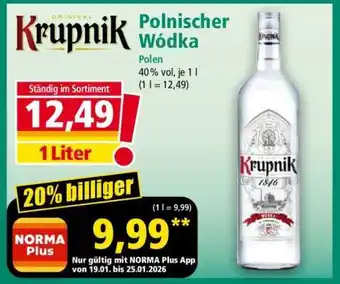 Jetzt im Angebot bei Norma: Krupnik Polnischer Wódka ✅ Aktion gültig vom 19-01 bis 25-01.