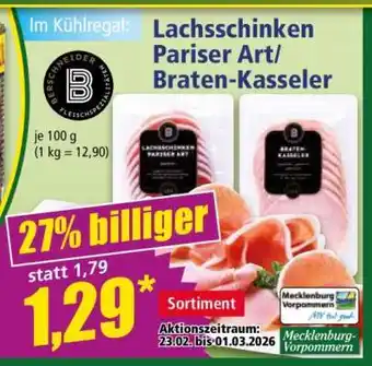 Jetzt im Angebot bei Norma: Lachsschinken Pariser Art/ Braten-Kasseler ✅ Aktion gültig vom 23-02 bis 1-03.