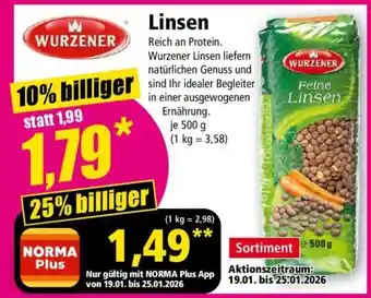 Jetzt im Angebot bei Norma: Linsen ✅ Aktion gültig vom 19-01 bis 25-01.