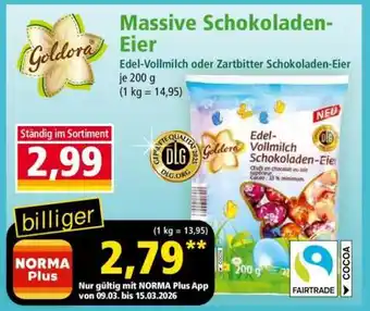 Jetzt im Angebot bei Norma: Massive Schokoladen-Eier ✅ Aktion gültig vom 9-03 bis 15-03.