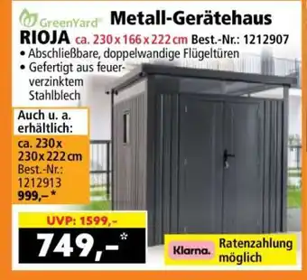 Metall-Gerätehaus RIOJA-Rabatt bei Norma