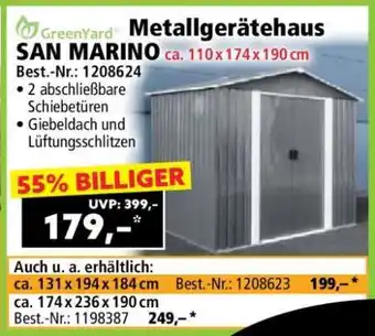 Metallgerätehaus SAN MARINO ca. 110 x 174 x 190 cm-Rabatt bei Norma