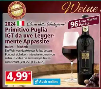 Jetzt im Angebot bei Norma: Primitivo Puglia IGT da uve Leggermente Appassite ✅ Aktion gültig vom 2-03 bis 8-03.
