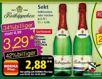 Jetzt im Angebot bei Norma: Rotkäppchen Sekt halbtrocken oder trocken ✅ Aktion gültig vom 4-05 bis 10-05.