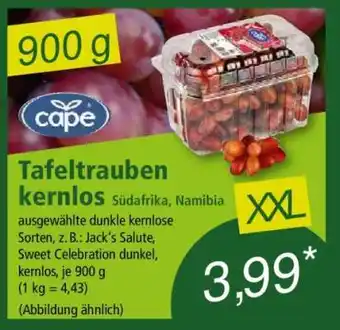 Das Angebot ist in verschiedenen Geschäften erhältlich. Schauen Sie sich alle Produkte an, um das günstigste Tafeltrauben kernlos zu ergattern. Wenn Sie gerne nachschauen möchten, ob der Artikel woanders noch günstiger ist, werfen Sie einen Blick auf die Kategorie 'Discounter'. Möglicherweise sind diese Angebote auch interessant für Sie: Tafeltrauben rot oder hell. kernlos, Sanlucar tafeltrauben rot kernlos & Südafrika/Namibia Tafeltrauben rosé kernlos.