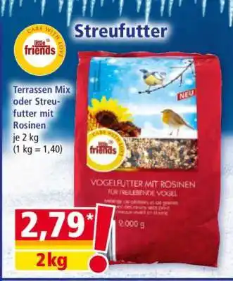 Jetzt im Angebot bei Norma: Terrassen Mix oder Streufutter mit Rosinen ✅ Aktion gültig vom 16-02 bis 22-02.