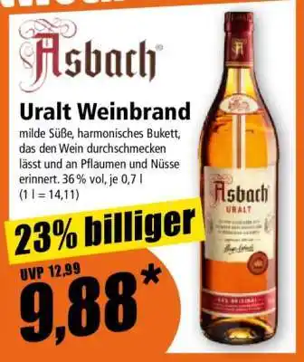 Abgesehen von Uralt Weinbrand, bietet Norma eine Menge anderer Artikel an. Behalten Sie den wöchentlichen Norma Prospekt im Blick, um die besten Angebote und Aktionen nicht zu verpassen. Abgesehen von Uralt Weinbrand können Sie weitere, interessante Angebote entdecken: Asbach Uralt Weinbrand, Asbach Uralt Weinbrand & Asbach Uralt Weinbrand.