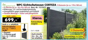 WPC-Sichtschutzzaun CORTEZA 5 Elemente (je ca. 170 x 180 cm) + 6 Pfosten (je ca. 10 x 10 x 185 cm)-Angebot bei Norma