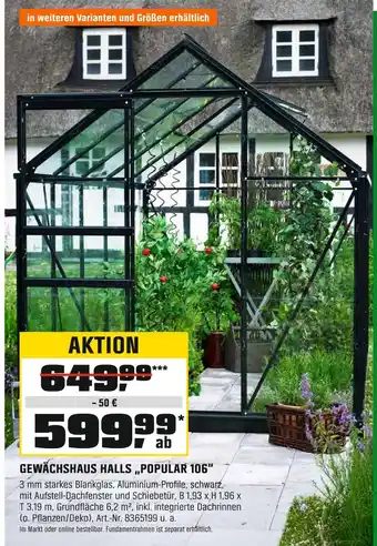 Jetzt im Angebot bei OBI: Gewächshaus halls „popular 106“ ✅ Aktion gültig vom 30-01 bis 28-02.