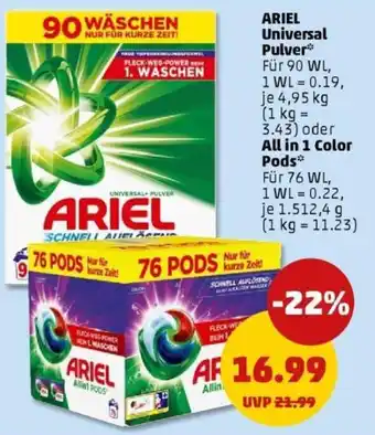 ARIEL Universal Pulver oder All in 1 Color Pods Angebote und Aktionen bei PENNY