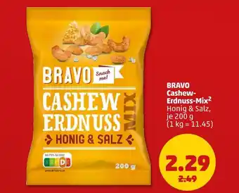 Jetzt im Angebot bei PENNY: Bravo cashew-erdnuss-mix honig & salz ✅ Aktion gültig vom 2-02 bis 8-02.