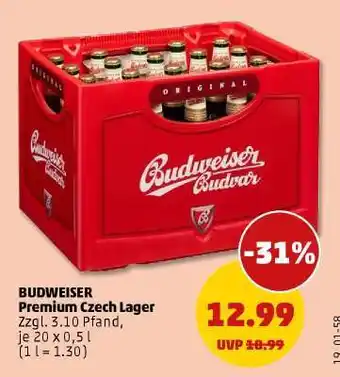Jetzt im Angebot bei PENNY: Budweiser Premium Czech Lager ✅ Aktion gültig vom 19-01 bis 24-01.