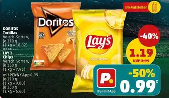 DORITOS Tortillas oder LAY'S Chips-Angebot bei PENNY