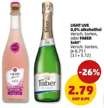 LIGHT LIVE 0,0% alkoholfrei oder FABER Sekt Aktion bei PENNY