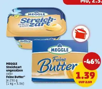 Jetzt im Angebot bei PENNY: MEGGLE Streichzart ungesalzen oder Feine Butter ✅ Aktion gültig vom 2-03 bis 7-03.