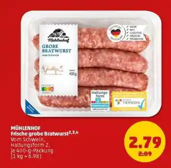 Jetzt im Angebot bei PENNY: MÜHLENHOF Frische grobe Bratwurst ✅ Aktion gültig vom 12-01 bis 17-01.
