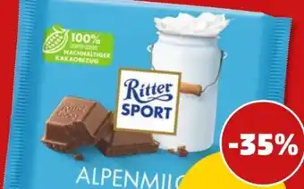 Jetzt im Angebot bei PENNY: Ritter Sport Alpenmilch ✅ Aktion gültig vom 12-01 bis 18-01.