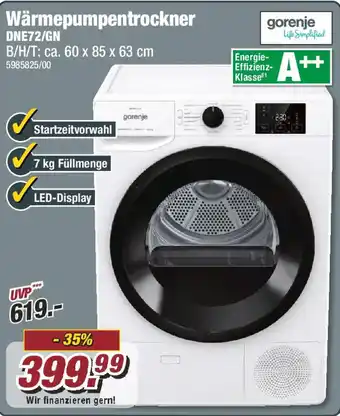Gorenje Wärmepumpentrockner DNE72/GN Angebote und Online Aktionen direkt aus dem aktuellen Poco Angebot