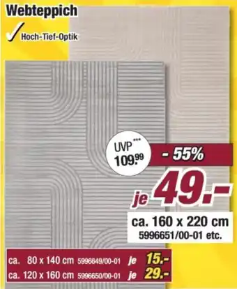 Werfen Sie einen Blick auf die günstigsten Produkte zwischen all den Angeboten! Wenn Sie gerne wissen möchten, ob Poco die höchsten Rabatte für Webteppich anbietet, vergleichen Sie die Angebote ganz einfach auf der Startseite mit den anderen Geschäften.