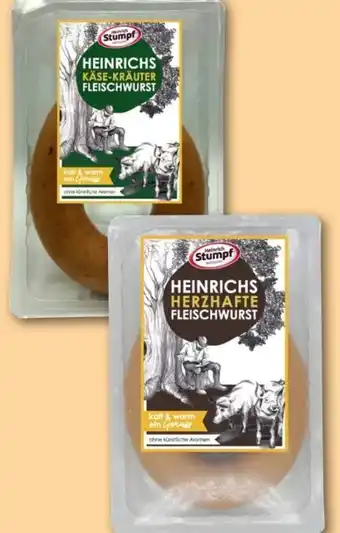 Jetzt im Angebot bei REWE Center: Heinrich Stumpf Metzgerei Heinrichs Herzhafte Fleischwurst ✅ Aktion gültig vom 9-02 bis 15-02.