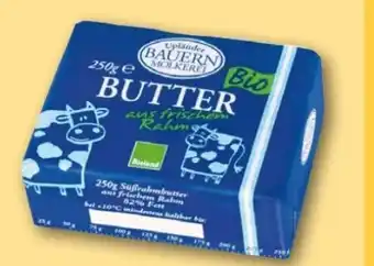 Jetzt im Angebot bei REWE Center: Upländer Bauern Molkerei Bio-Süßrahmbutter ✅ Aktion gültig vom 26-01 bis 1-02.