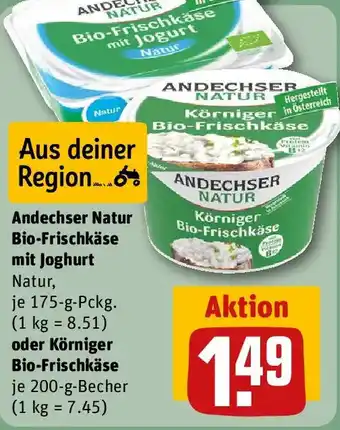 Andechser Natur Bio-Frischkäse mit Joghurt Natur oder Körniger Bio-Frischkäse Angebote und Aktionen bei REWE