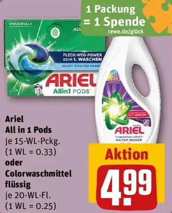 Ariel All in 1 Pods oder Colorwaschmittel flüssig Angebote und Online Aktionen direkt aus dem aktuellen REWE Angebot