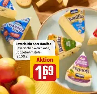 Jetzt im Angebot bei REWE: Bavaria blu oder Bonifaz Bayerischer Weichkäse ✅ Aktion gültig vom 27-04 bis 3-05.