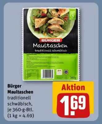 Jetzt im Angebot bei REWE: BÜRGER Maultaschen ✅ Aktion gültig vom 19-01 bis 25-01.