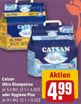 Catsan Ultra Klumpstreu 5 L oder Hygiene Plus 9 L Btl. Angebote und Aktionen bei REWE