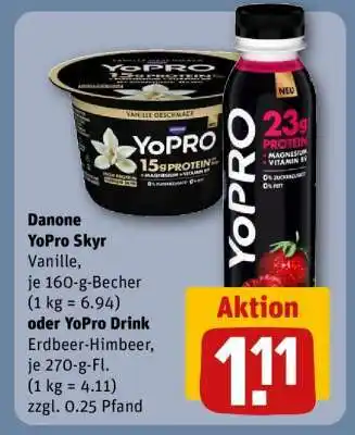 Danone YoPro Skyr Vanille oder YoPro Drink Erdbeer-Himbeer Angebote und Aktionen bei REWE