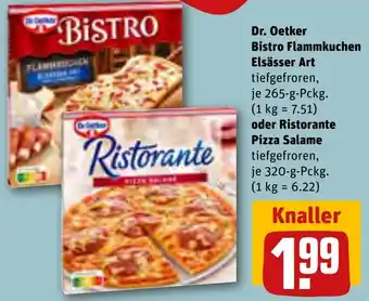 Dr. Oetker Bistro Flammkuchen Elsässer Art 265 g oder Ristorante Pizza Salame 320 g Pckg. Aktion bei REWE