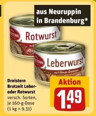 Jetzt im Angebot bei REWE: Dreistern Brotzeit Leber- oder Rotwurst ✅ Aktion gültig vom 23-02 bis 1-03.