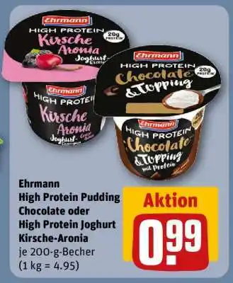Ehrmann High Protein Pudding Chocolate oder High Protein Joghurt Kirsche-Aronia Aktion bei REWE