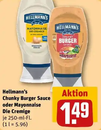 Hellmann's Chunky Burger Sauce oder Mayonnaise Die Cremige Aktion bei REWE