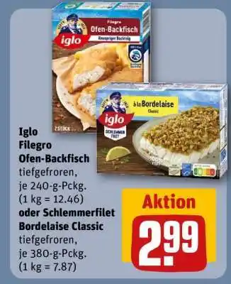 Iglo Filegro Ofen-Backfisch oder Schlemmerfilet Bordelaise Classic Angebote und Online Aktionen direkt aus dem aktuellen REWE Angebot